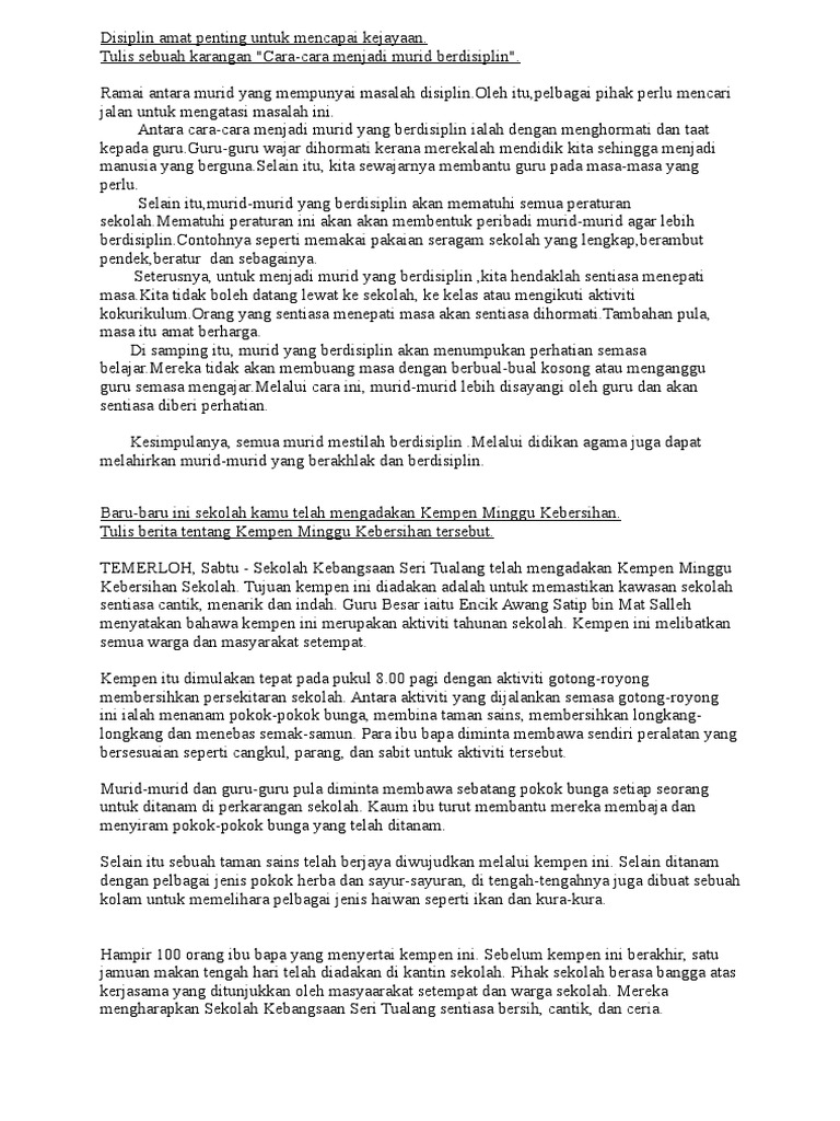 Karangan Cara Cara Menjadi Murid Berdisiplin Dan Karangan Cerita Pdf